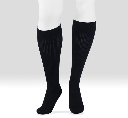 These socks feature a classic ribbed design that seamlessly pairs with both business and casual attire, giving you the confidence to manage your venous health without sacrificing your style.